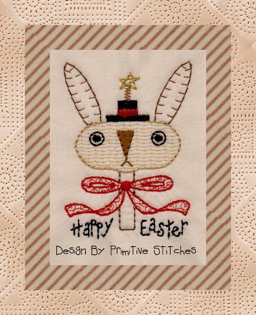 MACHINE EMBROIDERY-#PS-145-Prim Bunny-Redwork-4x44X4 Inches $32.85" x 3.92" 3840 Stitches7/7 ColorsFormats included in zip file:DST. EXP, HUS, JEF, PES, VIP, VIP3, SEW, XXX, COL, CDC, EMD, CSDEmbird Color Palette File IncludedOther formats and sizes are available upon requestArtwork & Digitized by: Rhonda Bowers of Primitive Stitches"Copyright" Primitive Stitches 2017All Rights Reserved