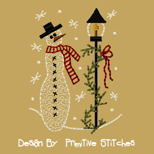 MACHINE EMBROIDERY-#PS-143-Snowman Lamp Post-4x44x4 Inches $42.91" x 3.92" 4675 Stitches7/7 ColorsFormats included in zip file:DST. EXP, HUS, JEF, PES, VIP, VIP3, SEW, XXX, COL, CDC, EMD, CSDEmbird Color Palette File IncludedOther formats and sizes are available upon requestArtwork & Digitized by: Rhonda Bowers of Primitive Stitches"Copyright" Primitive Stitches 2017All Rights Reserved