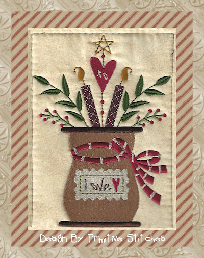 MACHINE EMBROIDERY-PS-360-Candle Heart Valentine Arrangement-5X7-Fill5 x 7 Inches-$8.004.91" X 6.83"22307 Stitches8/12 ColorsFormats Included in Zip File:DST, EXP, HUS, JEF, PES, VIP, XXX, SEW, VP3, CSD, EMDEmbird Color Palette File IncludedArtwork & Digitized by: Rhonda Bowers of Primitive Stitches"Copyright" Primitive Stitches 2019All Rights Reserved