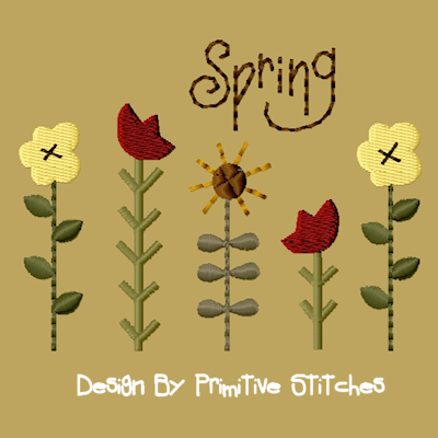 MACHINE EMBROIDERY--#PS-058-SPRING Garden-4x44x4 Inches $43.92" x 3.02" 4377 Stitches9/9 ColorsFormats included in zip file:DST. EXP, HUS, JEF, PES, VIP, VIP3, SEW, XXX, CSD, EMD, PCSEmbird Color Palette File IncludedOther formats are available upon requestArtwork & Digitized by: Rhonda Bowers of Primitive Stitches"Copyright" Primitive Stitches 2019All Rights Reserved