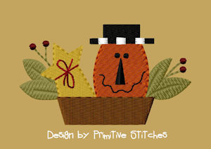 MACHINE EMBROIDERY-#PS-391-Pumpkin Basket-4X4-FILL4X4 Inches-$33.90" x 2.28"7275 Stitches8/8 ColorsFormats included in zip file:DST. EXP, HUS, JEF, PES, VIP, VIP3, SEW, XXX, CDC, EMD, CSD, PCSEmbird Color Palette File IncludedOther formats are available upon requestArtwork & Digitized by: Rhonda Bowers of Primitive Stitches"Copyright" Primitive Stitches 2020All Rights Reserved